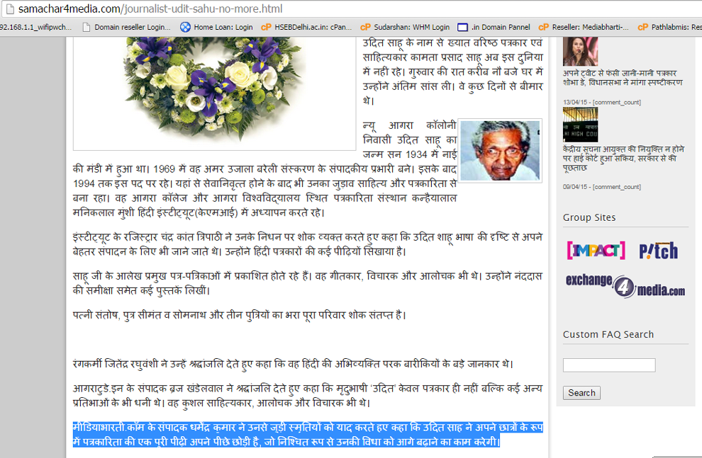 मीडियाभारती.कॉम के संपादक धर्मेंद्र कुमार ने उनसे जुड़ी स्मृतियों को याद करते हुए कहा कि उदित साहू ने अपने छात्रों के रूप में पत्रकारिता की एक पूरी पीढ़ी अपने पीछे छोड़ी है, जो निश्चित रूप से उनकी विधा को आगे बढ़ाने का काम करेगी।